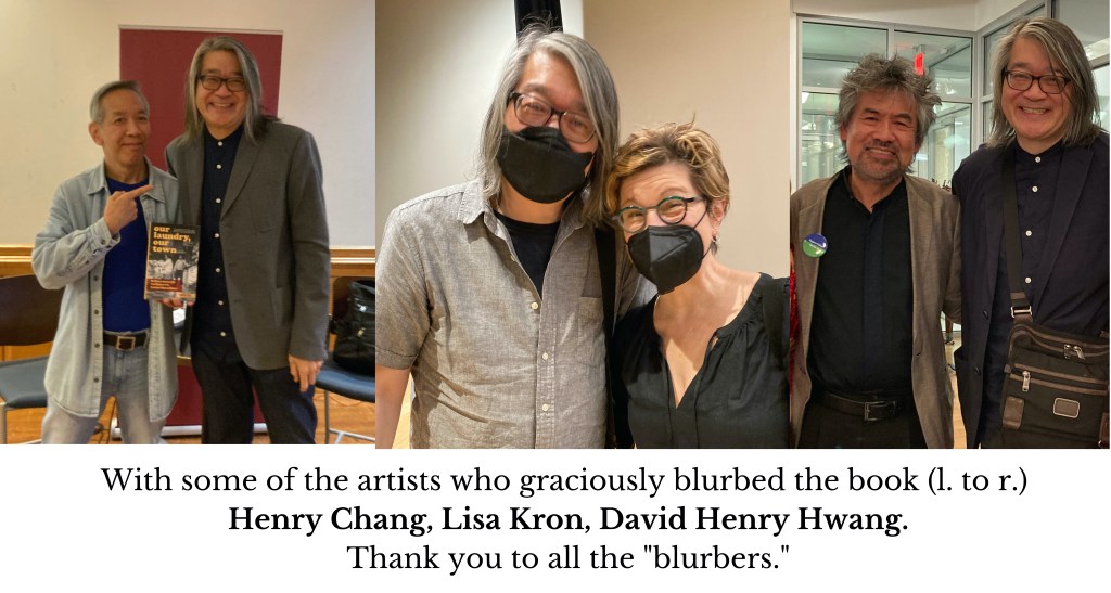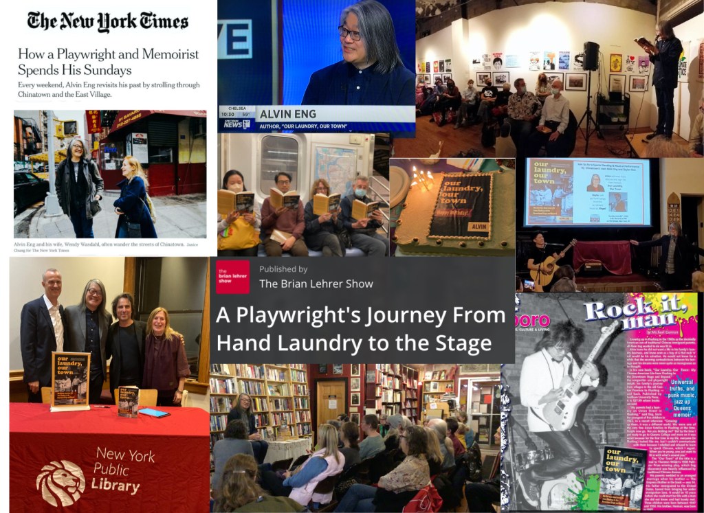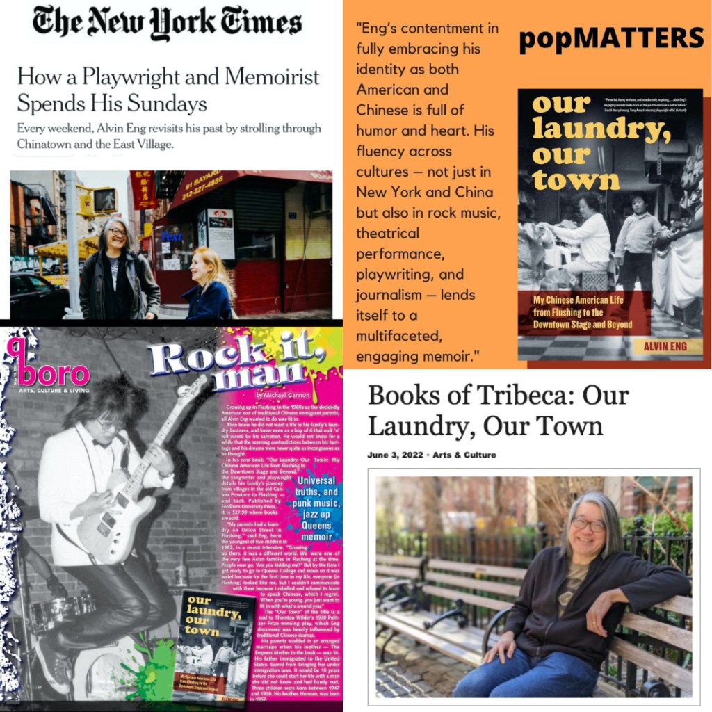 Since being published in hard cover by Fordham University Press/Empire State Editions in May 2022, Our Laundry, Our Town: My Chinese American Life from Flushing to the Downtown Stage and Beyond, was covered by The New York Times in a “Sunday Routine” profile, NPR/WNYC’s All of It with Alison Stewart and The Brian Lehrer Show, NY1’s Live at 10 with Cheryl Wills and CUNY-TV, among many others. In-person and virtual Author Events, Book Talks and Readings and Podcast profiles have also been enthusiastically received in book stores, branches of the New York Public Library, art galleries such as City Lore, where the book had its in-person launch on May 20, 2022 and at college and university venues such as CUNY/AAARI (Asian American/Asian Research Institute) where the book had its virtual launch––also on May 20. This page contains a complete listing of this coverage––with links to the media wherever possible––followed by a list of Author Events for the book––current, future and past. But let us start at the beginning, by giving thanks to all of the generous “blurbers.” (Looking ahead, the memoir will be published in paperback in October 2023.)